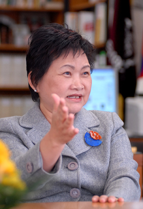 ÃëÀÓ 2³â°¿¡ Á¢¾îµç ÁöÀºÈñ ´ö¼º¿©´ë ÃÑÀåÀº ¡°¿©´ë°¡ Àü¹®ÈµÈ ¿©¼ºÀηÂÀ» ±æ·¯³»´Â µçµçÇÑ ¿ä¶÷À¸·Î ÀÚ¸®Àâ¾Æ¾ß ÇÑ´Ù¡±°í °Á¶ÇÑ´Ù. À̸¦ À§ÇØ °¢Á¾ ´ëÇÐÆò°¡¿¡¼ ¿ì¼öÇÑ ¼º°ú¸¦ ³»°í ÀÖ´Â ´ö¼º¿©´ëÀÇ ºê·£µå À̹ÌÁö¸¦ È®½ÇÈ÷ ±¸ÃàÇϰí, µµ½É¿¡ ÀÚ¸®ÀâÀº ¿î´Ïµ¿ Ä·ÆÛ½º¸¦ Àû±Ø Ȱ¿ëÇÑ´Ù´Â ¹æÄ§ÀÌ´Ù.