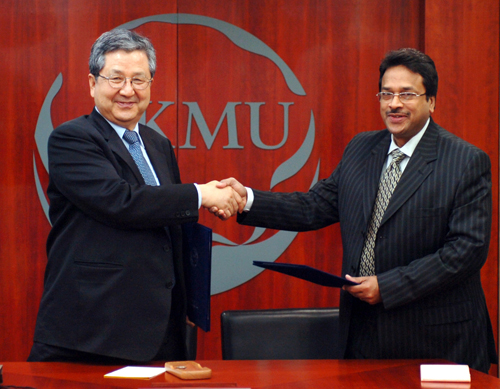 | ¡ã ±è¹®È¯ ÃÑÀå(¿ÞÂÊ)ÀÌ Áö³´Þ 14ÀÏ MOU¸¦ ü°áÇϱâ À§Çؼ ¹æ¹®ÇÑ Àεµ ±¹Á¦µðÀÚÀבּ¸¼Ò(National Institute of Design)ÀÇ Darlie O Koshy ¹Ú»ç¿Í ¾Ç¼ö¸¦ ³ª´©°í ÀÖ´Ù.