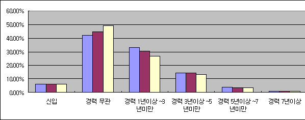 ƯÈ÷ ±â¾÷µéÀº »ç¿ø±Þ ä¿ë½Ã 39.76%°¡ Á÷±ÞÀ» ¹Ì¸® Á¤ÇÑ ¹Ý¸é, ´ë¸®±Þ(6.63%), °úÀå±Þ(3.05%), ÁÖÀÓ±Þ(3.02%), Â÷Àå±Þ(0.42%), ºÎÀå±Þ(0.22%)À¸·Î °¥¼ö·Ï Á÷±ÞÀ» ¹Ì¸® Á¤ÇÏÁö ¾Ê°í ä¿ëÇß´Ù.