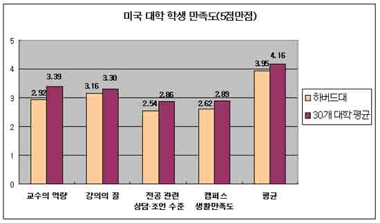 ÇϹöµå´ë ÇлýµéÀÇ Àüü ¸¸Á·µµ ¼öÁØÀº 5Á¡ ¸¸Á¡¿¡ 3.95Á¡À¸·Î, ÇϹöµå¸¦ Á¦¿ÜÇÑ ³ª¸ÓÁö 30°³ ´ëÇÐÀÇ Æò±Õ ¸¸Á·µµ 4.16¿¡ ¸ø ¹ÌÃÆ´Ù.