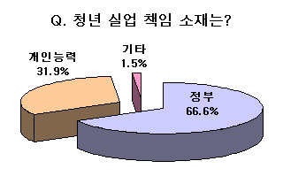 û³â½Ç¾÷ ¹®Á¦°¡ Á¤ºÎÀÇ Ã¥ÀÓÀÎÁö °³ÀÎ ´É·ÂÀÇ ¹®Á¦ÀÎÁö¸¦ ¹¯´Â Áú¹®¿¡ ´ëÇØ¼µµ ¿ª½Ã `Á¤ºÎÀÇ Ã¥ÀÓ'À̶ó´Â ´äº¯ÀÌ 66.7%·Î `°³ÀÎÀÇ ´É·Â¹®Á¦'¶ó´Â ´äº¯ 31.9%º¸´Ù µÎ ¹èÀÌ»ó ¸¹¾Ò´Ù.