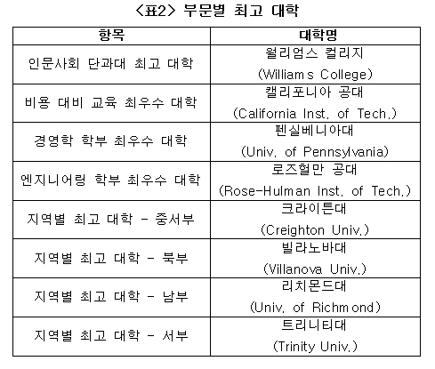 À̹ۿ¡ ÃÖ°íÀÇ °æ¿µÇÐ ÇкΰúÁ¤À¸·Î Ææ½Çº£´Ï¾Æ´ë(¿Íư)°¡ Á¤»óÀ» Â÷ÁöÇß°í MIT(½½·Î¿î), ͏®Æ÷´Ï¾Æ´ë ¹öŬ¸®(ÇϽº), ¹Ì½Ã°£´ë(¾Ø¾Æ¹ö) µîÀÌ µÚ¸¦ À̾ú´Ù. ÃÖ°íÀÇ ¿£Áö´Ï¾î¸µ ÇкΰúÁ¤¿¡´Â ·ÎÁî Çæ¸¸ °ø´ë°¡ ¼±Á¤µÆ°í ÇϺñ ¸Óµå Äø®Áö, ÄíÆÛ À¯´Ï¿Â µîµµ 2~3À§¿¡ ¿Ã¶ó ¿ì¼öÇÑ Æò°¡¸¦ ¹Þ¾Ò´Ù.