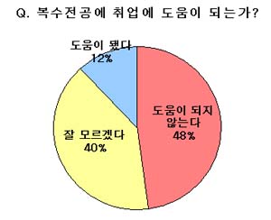 ÇÑÆí, º¹¼öÀü°ø°ú °ü·Ã Ãë¾÷Áغñ»ý Áß 15.2%(80¸í)°¡ º¹¼öÀü°øÀ» ÇÑ °ÍÀ¸·Î ³ªÅ¸³µÀ¸¸ç À̵é Áß 47.4%´Â ¡®º¹¼öÀü°øÀÌ Ãë¾÷¿¡ µµ¿òÀÌ µÇÁö ¾Ê´Â´Ù¡¯°í ´äÇØ, ½ÇÁúÀûÀ¸·Î º¹¼ö Àü°øµµ Ãë¾÷ÀüÀï¿¡ º°´Ù¸¥ µµ¿òÀÌ µÇ°í ÀÖÁö´Â ¸øÇÑ °ÍÀ¸·Î ³ªÅ¸³µ´Ù.