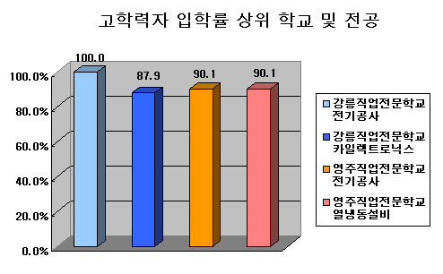 °¸ªÁ÷¾÷Àü¹®Çб³ÀÇ °æ¿ì Àü±â°ø»ç °ü·Ã 33¸í Á¤¿ø¿¡ ÀÔÇлý Àüü°¡ °íÇзÂÀÚÀÎ °ÍÀ¸·Î ÆÄ¾ÇµÆÀ¸¸ç °øÁ¶³Ãµ¿±â°è, Ä«ÀÏ·ºÆ®·Î´Ð½º °ü·Ã Àü°øÀº ¿ª½Ã 33¸í Á¤¿ø¿¡ 29¸í¾¿ ÀÔÇÐÇÑ °ÍÀ¸·Î Á¶»çµÅ 88%°¡ °íÇзÂÀÚ ÀÔÇлýµéÀ̾ú´Ù.