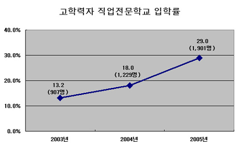 ¿ÃÇØ Á÷¾÷Àü¹®Çб³ ÀÔÇÐÀÚ Áß ÀüüÀÇ 29%°¡ °íÇзÂÀÚÀÎ °ÍÀ¸·Î ¹àÇôÁ® Áö³ ÇØ ´ëºñ ¹«·Á 11%Æ÷ÀÎÆ® Áõ°¡ÇÑ °ÍÀ¸·Î ³ªÅ¸³µ´Ù.