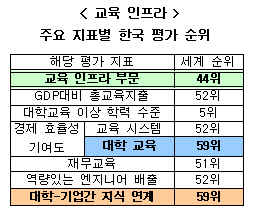 Çѱ¹ÀÇ ´ëÇб³À° °æÀï·ÂÀÌ ¼¼°è ÃÖÇÏÀ§ ¼öÁØ¿¡ ¸Ó¹«¸£°í ÀÖÀ¸¸ç ±³À°°æ¿µ ÀÎÇÁ¶ó´Â ¾ÆÁ÷µµ ÇÏÀ§±Ç¿¡¼ ¹þ¾î³ªÁö ¸øÇϰí ÀÖ´Â °ÍÀ¸·Î ³ªÅ¸³µ´Ù.