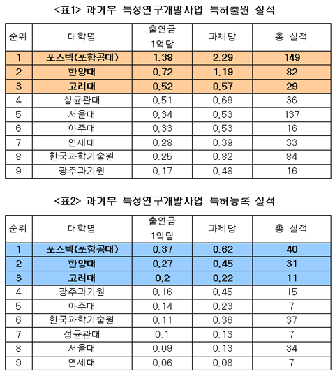 ƯÇãÃâ¿ø ÃÑ ½ÇÀûÀº Æ÷½ºÅØ¿¡ ÀÌ¾î ¼¿ï´ë(137°Ç), Çѱ¹°úÇбâ¼ú¿ø(84°Ç), ÇѾç´ë(82°Ç)ÀÇ ¼øÀ̾ú°í ƯÇãµî·ÏÀº ¿ª½Ã Æ÷½ºÅØ¿¡ À̾î Çѱ¹°úÇбâ¼ú¿ø(37°Ç), ¼¿ï´ë(34°Ç), ÇѾç´ë(31°Ç)ÀÇ ¼øÀ¸·Î ¼ºÀûÀÌ ÁÁ¾Ò´Ù.