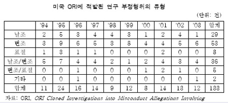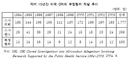 »ï¼º°æÁ¦¿¬±¸¼Ò ÀÓ¿µ¸ð, °íÀ¯»ó ¼ö¼®¿¬±¸¿øÀÌ 22ÀÏ ³»³õÀº ¿¬±¸º¸°í¼ ¡®°úÇкоßÀÇ ¿¬±¸À±¸®¡¯¿¡ µû¸£¸é ¿¬±¸ ºÎÁ¤ ÇàÀ§¿¡ ´ëÇÑ ¿¹¹æ Á¶»ç ü°è°¡ °¡Àå Àß ¹ß´ÞµÅ ÀÖ´Â ¹Ì±¹ÀÇ °æ¿ìµµ ¿¬¹æ ¿¬±¸À±¸®±¹(ORI:Office of Research Integrity)ÀÌ Áö³ 1994³âºÎÅÍ 2003³â±îÁö 10³â°£ Àû¹ßÇÑ ¿¬±¸ ºÎÁ¤ ÇàÀ§ °Ç¼ö°¡ 1¹é33°Ç¿¡ ´ÞÇß´Ù.