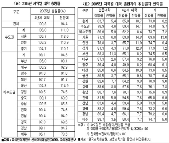 º»Áö°¡ Çѱ¹±³À°°³¹ß¿ø ±³À°Åë°è¼¾ÅÍ ¡®°íµî±³À° Áö¿ªº° ÇöȲ¡¯À» ºÐ¼®ÇÑ °á°ú 2005³â Àü¹®´ë¿Í 4³âÁ¦ ´ëÇÐÀ» Æ÷ÇÔÇØ ´ëÇÐÀÔÇÐÁ¤¿ø ´ëºñ °í±³Á¹¾÷ÀÚ ¼öÀÇ ºñÀ²ÀÌ Àü±¹ÀûÀ¸·Î Æò±Õ 93.1%·Î 0.7%°¡ ¸ðÀÚ¶õ ¼öÁØÀÎ °ÍÀ¸·Î ³ªÅ¸³µ´Ù.