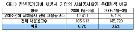10ÀÏ Ãë¾÷Æ÷ÅÐ ÀâÄÚ¸®¾Æ¿¡ µû¸£¸é Áö³ 1¿ùºÎÅÍ 3¿ù±îÁö ¿Ã 1/4ºÐ±â µ¿¾È ÀÚ»ç »çÀÌÆ®¿¡ µî·ÏµÈ ±â¾÷µéÀÇ Ã¤¿ë°ø°í 18¸¸5õ6¹é13°ÇÀ» ºÐ¼®ÇÑ °á°ú, ä¿ë½Ã Áö¿øÀÚÀÇ »çȸºÀ»çȰµ¿À» ¿ì´ëÇÏ´Â ±â¾÷Àº Àüü ä¿ë±â¾÷ Áß 6.7%(12,411°Ç)À¸·Î Áö³ÇØ µ¿±â°£ 3.5%(145,720°Ç Áß 5,126°Ç)¿¡ ºñÇØ 2¹è °¡±îÀÌ Áõ°¡ÇÑ °ÍÀ¸·Î ³ªÅ¸³µ´Ù.