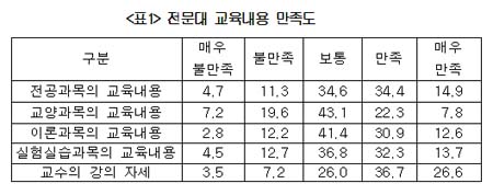 ÃÖ±Ù Àü¹®´ëÇб³À°ÇùÀÇȸ Á¤Ã¥¿¬±¸ ¡®Àü¹®´ëÇÐ ±³À°Àü¹Ý¿¡ ´ëÇÑ Çлý¸¸Á·µµ Á¶»ç¡¯¸¦ À§ÇØ ¹®ÈñÁÖ ¼¿ïº¸°Ç´ë ±³¼ö, Á¤¸íÈ µ¿ÀǰúÇÐ´ë ±³¼ö µîÀÌ Àü±¹ 1¹é12°³ Àü¹®´ë Á¹¾÷¿¹Á¤ÀÚ 1õ9¹é62¸íÀ» ´ë»óÀ¸·Î Áö³ ÇØ 5¿ù ½Ç½ÃÇÑ ¼³¹® Á¶»ç °á°ú À̰°ÀÌ ³ªÅ¸³µ´Ù.