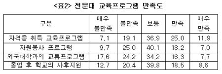 Àü¹®´ë Ư¼ºÀ» ¹Ý¿µÇÏ´Â ÀÚ°ÝÁõ Ãëµæ ±³À° ÇÁ·Î±×·¥¿¡ ´ëÇÑ ¸¸Á·µµ´Â ¿ÀÈ÷·Á ±â´ë¿¡ ¸ø ¹ÌÄ¡´Â °ÍÀ¸·Î ³ªÅ¸³µ´Ù. ¸¸Á·½º·´´Ù´Â ÀÀ´äÀÚ°¡ 36.9%¿¡ ºÒ°úÇßÀ¸¸ç ºÒ¸¸½º·´´Ù´Â ÀÀ´äÀÌ 26.2%³ª µÆ´Ù.