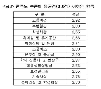 ±³À°³»¿ë, Àü°ø, ´ëÀΰü°è, Á¹¾÷ ÈÄ Çб³¿ÍÀÇ °ü°è µî¿¡ ´ëÇØ¼´Â ´ëü·Î ¸¸Á·ÇÏ´Â ¹Ý¸é ¿Ü±¹°úÀÇ ±³·ù, ÀÚ¿øºÀ»ç, Àü°øº° ÇнÀÁ¶Á÷ µîÀÇ ÇÁ·Î±×·¥°ú Á¹¾÷ ÈÄ Çб³ÀÇ »çÈÄ Áö¿ø µî¿¡ ´ëÇØ¼´Â ±×´ÙÁö ¸¸Á·½º·¯¿ö ÇÏÁö ¸øÇϰí ÀÖ´Â °ÍÀ¸·Î ¹àÇôÁ³´Ù. ƯÈ÷ ÆíÀÇ º¹Áö½Ã¼³ ¼³ºñ¿¡ ´ëÇØ¼´Â »ó´çÇÑ ºÒ¸¸À» °¡Áö°í ÀÖ´Â °ÍÀ¸·Î µå·¯³µ´Ù.