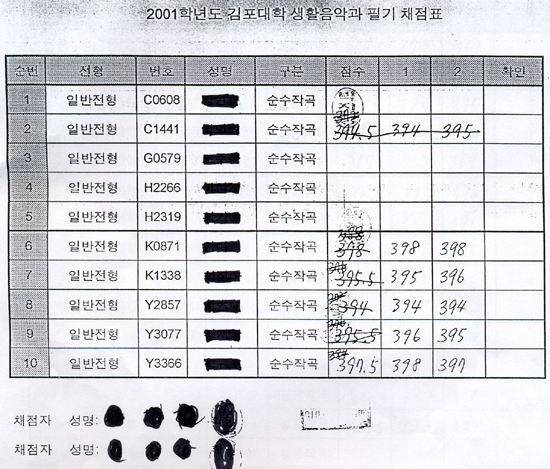 Áö³ 2001³â ½ÃÇàµÆ´ø ±èÆ÷´ëÇÐ »ýȰÀ½¾Ç°ú ÀÔÇнÃÇè¿¡¼ ÃÖÁ¾ ÇÕ°ÝÀÚ¿¡ ƯÁ¤ Àü°ø Áö¿øÀÚµéÀÌ ´ë°Å Æ÷ÇÔµÇ°í ½Ç·ÂÀÌ ¶³¾îÁö´Â °ÍÀ¸·Î ÀǽɵǴ Áö¿øÀÚ°¡ ÃÖÁ¾ ÇÕ°ÝÁ¡¼ö¸¦ ¹ÞÀÚ ÀÌ¿¡ ´ëÇÑ ºÎÁ¤Ã¤Á¡ÀÌ ÁÖÀåµÈ °Í.
