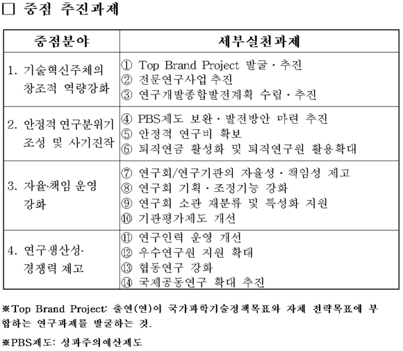 °ú±âºÎ´Â ¡â±â¼úÇõ½ÅÁÖüÀÇ Ã¢Á¶Àû ¿ª·® °È ¡â¾ÈÁ¤Àû ¿¬±¸ ºÐÀ§±â Á¶¼º ¡âÃ⿬¿¬±¸¼ÒÀÇ ÀÚÀ²¡¤Ã¥ÀÓ ¿î¿µ °È ¡â¿¬±¸»ý»ê¼º¡¤°æÀï·Â Á¦°í ¹æ¾È µîÀ» ÁßÁ¡ ÃßÁøÇÒ °èȹÀÌ´Ù.
