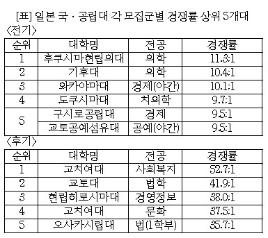 ÀϺ» ¹®ºÎ°úÇмºÀÌ °ø°³ÇÑ ¡®2006Çг⵵ ±¹¡¤°ø¸³´ë Áö¿øÀ²¡¯¿¡¼ ÃÑ Áö¿øÀÚ ¼ö´Â 50¸¸ 5õ3¹é67¸íÀ¸·Î ÃÑ °æÀï·üÀº 5.0:1. ÀÌ´Â ¼¾ÅͽÃÇè(Çѱ¹ÀÇ ¼ö´É½ÃÇè)ÀÌ µµÀÔµÈ Áö³ 90³â ÀÌ·¡ ÃÖÀúÄ¡¿´´ø Áö³ÇØ¿Í °°Àº ¼öÄ¡´Ù. °ø¸³´ëÀÇ °æ¿ì Áö³Çغ¸´Ù ¶³¾îÁø 6.6:1·Î ÃÖÀú °æÀï·üÀ» °»½ÅÇϰí Áö¿øÀÚ¼ö°¡ ¸ðÁýÁ¤¿ø¿¡ ¹Ì´ÞµÈ ´ëÇеµ ÀÖ¾î Àα¸ °¨¼Ò¿¡ µû¸¥ ÀÔÇÐÁ¤¿ø È®º¸ ¹®Á¦°¡ Á¶±Ý¾¿ Çö½ÇȵǴ °ÍÀ¸·Î º¸ÀδÙ.