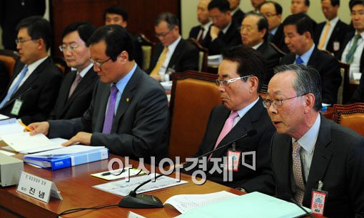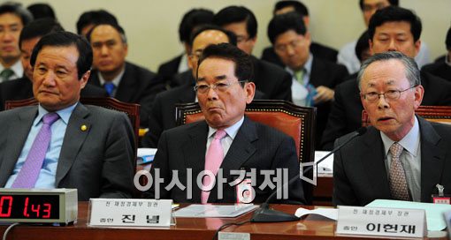 20ÀÏ ±¹È¸¿¡¼ ¿¸° ÀúÃàÀºÇà û¹®È¸¿¡ ÁõÀÎÀ¸·Î Ãâ¼®ÇÑ ÀÌÇåÀç Àü ÀçÁ¤°æÁ¦ºÎ Àå°üÀÌ ÀÇ¿øµé ÁúÀÇ¿¡ ´äº¯Çϰí ÀÖ´Ù.