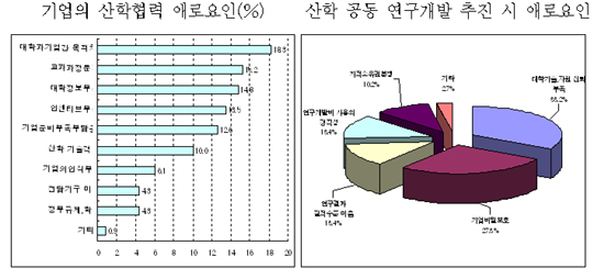 »êÇÐÇù·ÂÀ» ÃßÁøÇÏ´Â µ¥ °¡Àå Å« ¾î·Á¿òÀ¸·Î '±â¾÷°ú ´ëÇÐÀÌ ¼·Î Ãß±¸ÇÏ´Â ¹Ù°¡ ´Ù¸£´Ù´Â Á¡'(18.3%)ÀÌ ÁöÀûµÆ´Ù. ÀÌ¾î ¡â±³°ú°úÁ¤ÀÇ ÇöÀå¼ö¿ä ¹Ý¿µ ¹ÌÈí(15.2%) ¡â´ëÇÐÀÇ ¿ª·® ¹× ÀÎÀç µî¿¡ ´ëÇÑ Á¤º¸ ºÎÁ·(14.3%) ¡âÁ¤ºÎÁö¿ø µî »êÇÐÇù·Â¿¡ ´ëÇÑ Àμ¾Æ¼ºê ºÎÁ· (13.5%) ¡â±â¾÷³» Áغñ ºÎÁ· ¹× ¾÷¹«ºÎ´ã Áõ°¡(12.6%) ¡â±â¾÷°ú ´ëÇа£ ±â¼ú°ÝÂ÷(10.0%) µîÀÌ Á¦±âµÆ´Ù.
