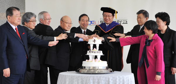 µ¿¼´ë Á¦7´ë ÃÑÀå¿¡ ÀåÁ¦±¹ ¹Ú»ç°¡ 7ÀÏ ÃëÀÓÇß´Ù. Àå ÃÑÀåÀº ¹Ì±¹ Á¶Áö ¿ö½ÌÅÏ´ë¿¡¼ Á¤Ä¡ÇÐ ¼®»ç¿Í ½Ã¶óÅ¥½º ·Î½ºÄð¿¡¼ ¹ýÇйڻ縦, ÀϺ» °ÔÀÌ¿À´ë¿¡¼ Á¤Ä¡ÇÐ ¹Ú»ç¸¦ ¹Þ°í ÀÌ ´ëÇÐ ºÎÃÑÀåÀ¸·Î ÀçÀÓÇØ ¿Ô´Ù. ÃëÀÓ½Ä Á÷ÈÄ ¿¸° ¸®¼Á¼Ç¿¡¼ Àå ÃÑÀå(¿À¸¥ÂÊ ³×¹øÂ°)°ú ³»¿ÜºóÀÌ ÃàÇÏ ÄÉÀÌÅ© Ä¿ÆÃÀ» Çϰí ÀÖ´Ù.